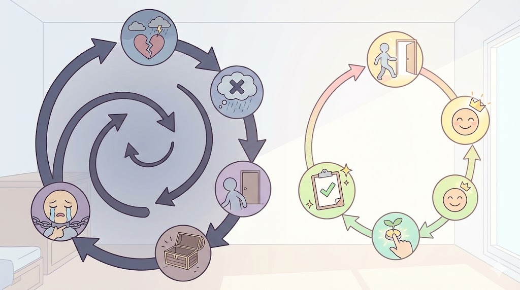 この3つの思考パターン(自分への帰属、範囲の拡大、永続化)が揃うと、人は「努力する」という選択肢を完全に放棄し、ただ自分を責め続けるだけの状態にロックされてしまいます。