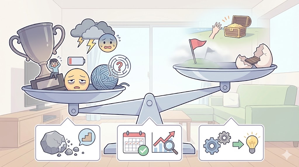 - コストの過大評価: 完璧主義や不安から、「この作業は大変だ」「失敗したらどうしよう」と、実際の労力以上に行動のハードルを高く見積もってしまっている。