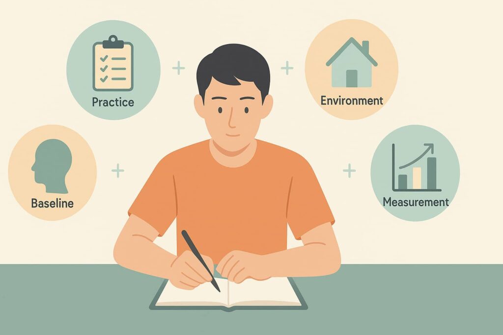 - 環境:時間と場所を先に固定する/邪魔になる刺激を減らす