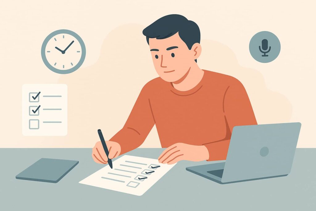 | 何を直すか不明 | 記録と外部化がない | 録音・録画→チェック表で自己採点→週1で提出 |
