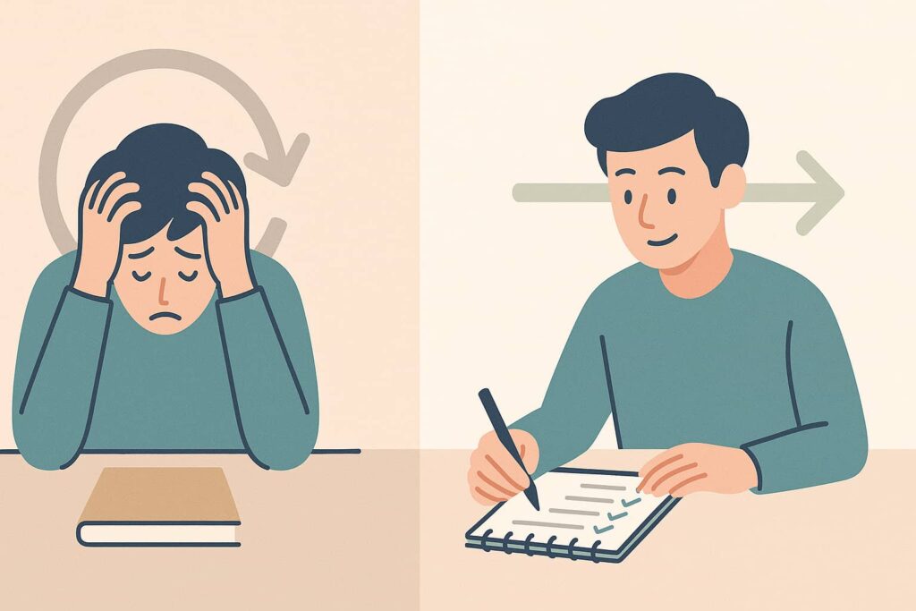 自分を強く否定する状態が続くと、手が止まり、その停滞がまた自己否定を強めるという悪循環が起きやすくなると言われます。