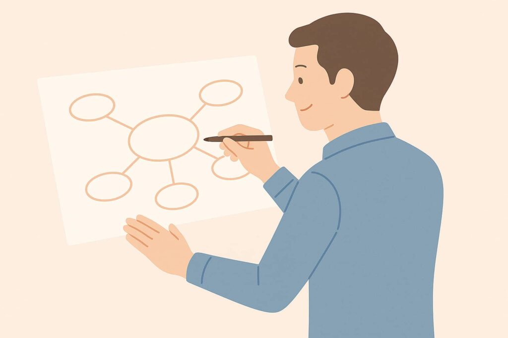 紙に自由に書き出していくと、意外な関連性や方向性が見えてきます。