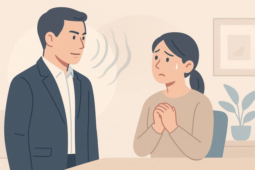 例えば、上司や専門家のように権威を感じる相手が短く否定的な返答をしたり、質問の途中で話を遮ったり、沈黙を長く取ったりすると、「怒っているのかな」「自分が間違えたのかも」と受け手が感じることがあります。