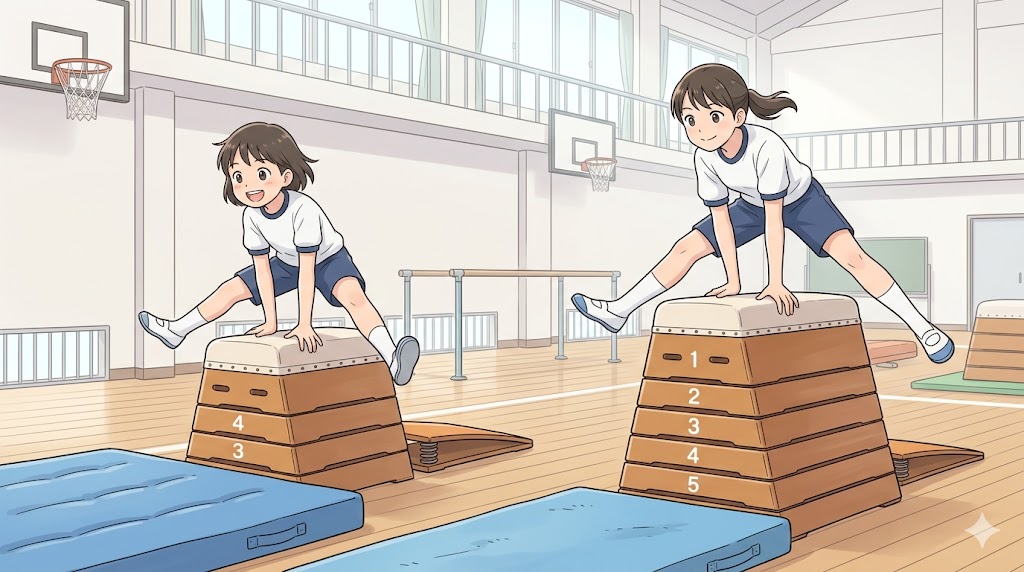 今回は、跳び箱の高さに関する規格の特徴や、それを安全に跳び越えるための具体的な体の使い方についてご紹介しました。