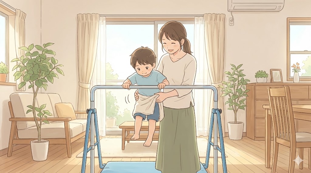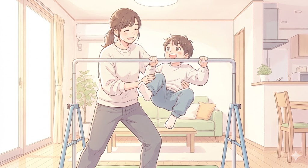 また器具(室内鉄棒・踏み台・補助ベルト等)は必ずメーカーの対象年齢/耐荷重/設置条件/使用方法に従ってください。破損やガタつきがある場合は使用しないでください。
