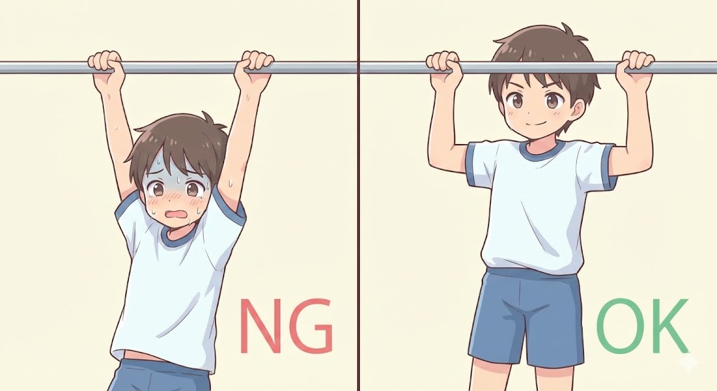 家での練習は、誰にも見られず、何度失敗しても笑われない、心理的にも世界で一番安心できる場所です。焦る必要はありません。1日5分のエア逆上がりからで構いません。
