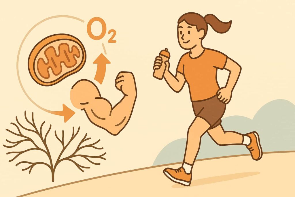 低〜中強度で長く続けるタイプの運動(いわゆる基礎持久のトレーニング)では、ミトコンドリアの量が増える方向に体が順応しやすく、毛細血管が増えるなど酸素の通り道も整い、結果として疲れにくさが向上しやすいという説明がされています。