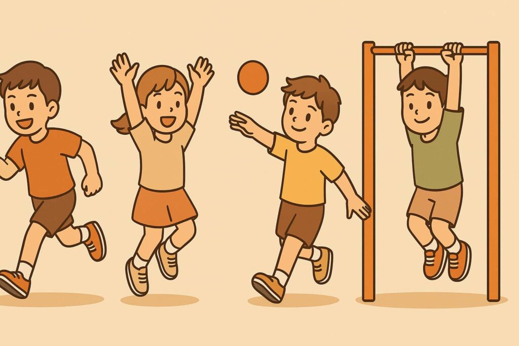走る・跳ぶ・投げる・捕る・ぶら下がる・転がる・よじ登る・回るといった基本的な動きのバリエーションが多く、しかも繰り返し触れているほど、体内の「動きの回路」が豊かになり、失敗しても修正しやすくなると説明されます。