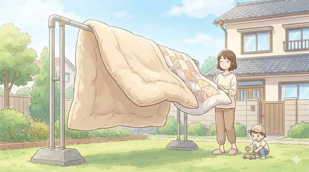しっかりとした強度の「鉄棒」が一本あれば、重たい布団も安心して干せますし、何より風が吹くたびに「倒れるかも…」と窓の外を気にするストレスから解放されるでしょう
