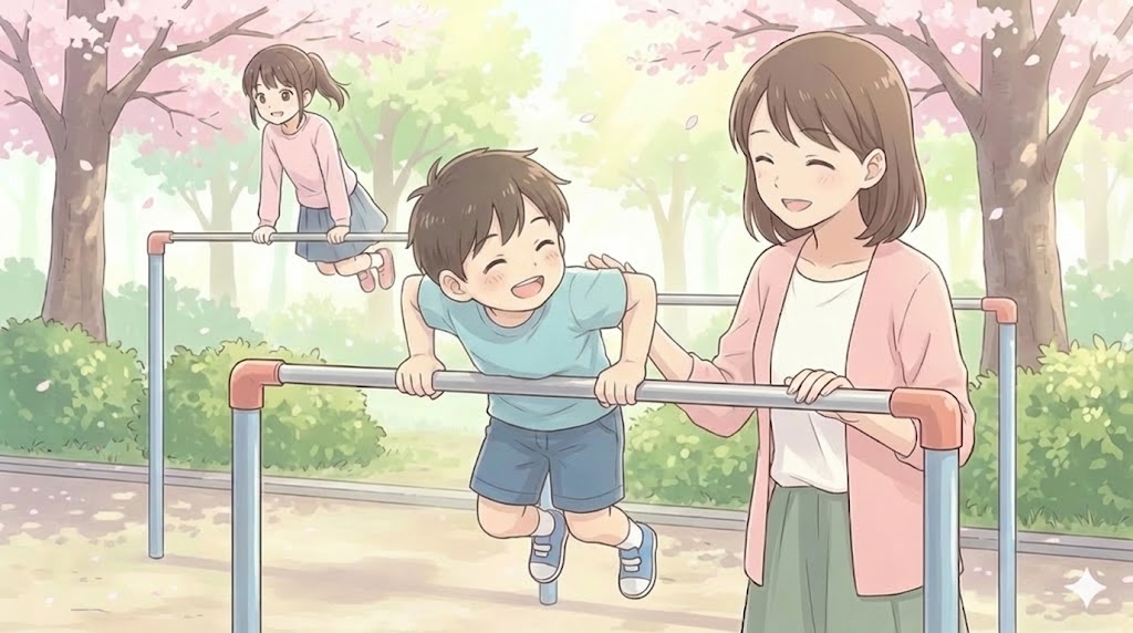 「怖かったね、頑張ったね」と共感し、その日は鉄棒から離れてブランコや滑り台で思い切り遊びましょう。「また今度やってみよう」と思える心の余裕を守ることが、結果的に一番の近道になります。