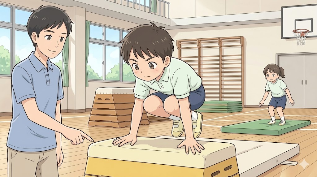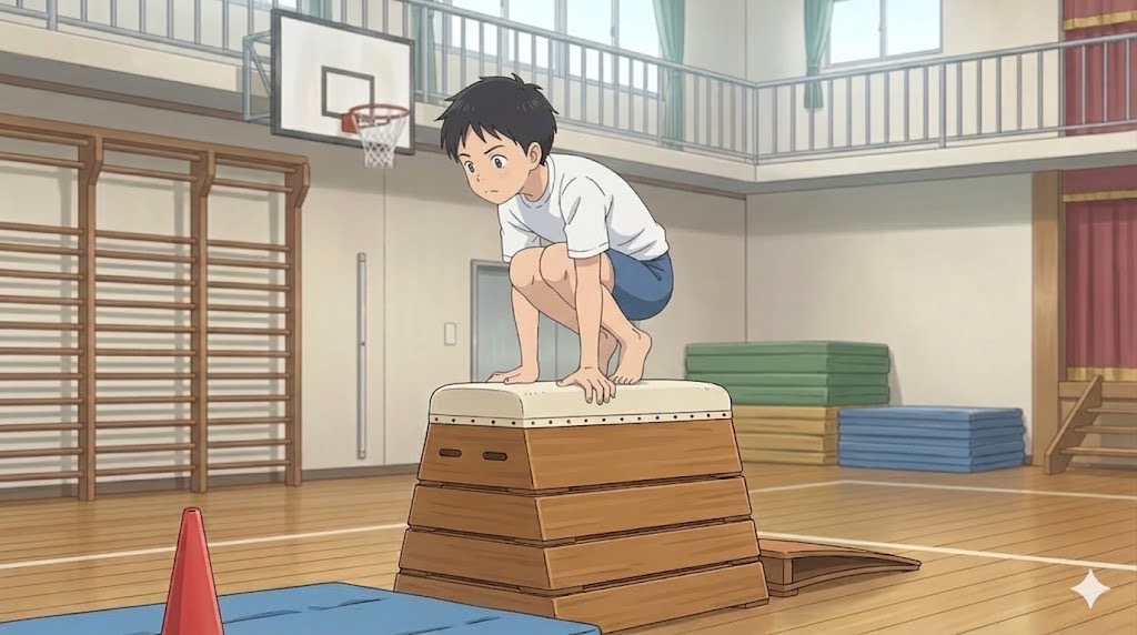 閉脚跳び(抱え込み跳び)は、開脚跳びとは根本的に異なる身体操作が求められるため、小学生がつまずきやすい種目の代表格です。